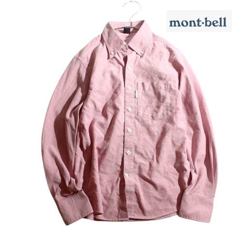 > 美品 mont-bell モンベル コアスパン オックスフォード ボタンダウンシャツ 男女兼用 XS レッド 赤 シャツ 長袖シャツ カジュアル
