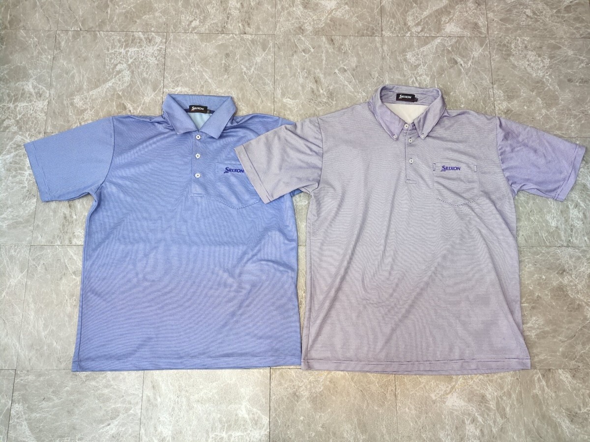 - 7.スリクソン 2点 2枚 セット まとめ SRIXON ボーダー柄 伸縮性有り 半袖ポロシャツ メンズL LL 紫水色 紫白 ゴルフウェア x705