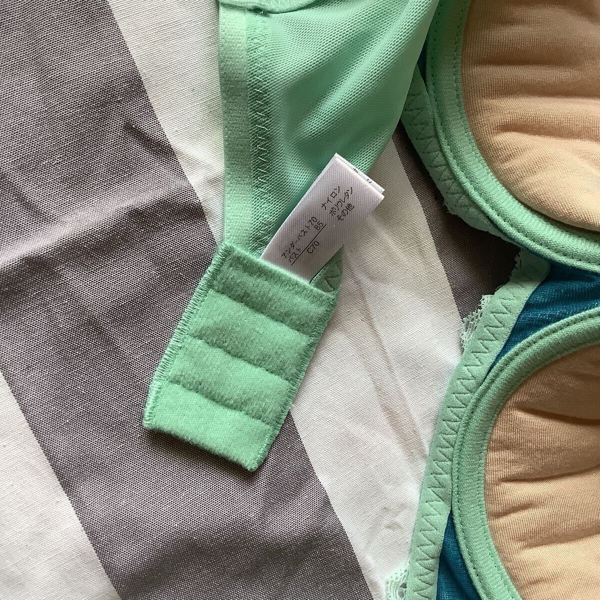 - ブラジャー ミント色系 レース リボン付き ☆新品☆ サイズC70