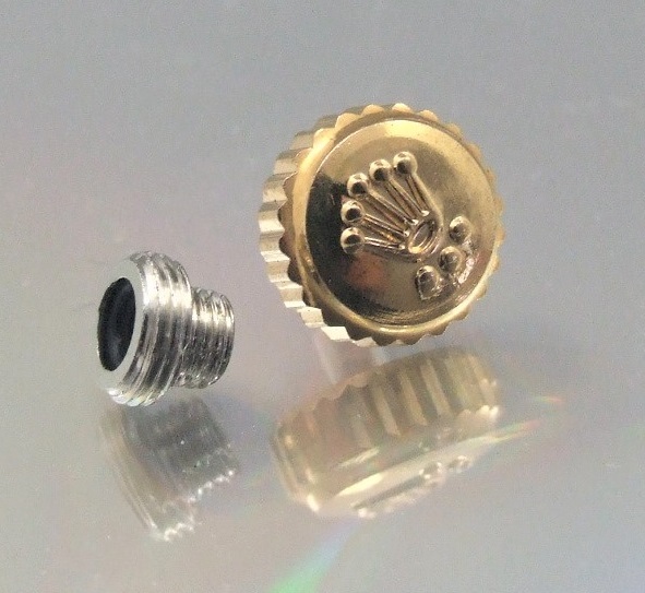 - ◆ 修理交換用パーツ ★ 7mm リューズ・チューブのセット ◆ スプリング式 ◇ パッキン内蔵 ◆ 金色・王冠マーク刻印 ◆ 対応品 ◆