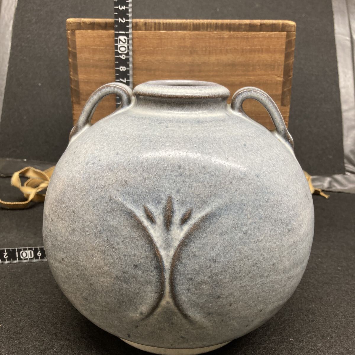 - 京焼 伊藤翠壺造(物故作家)翠壺窯殿彩 扁壺 共箱付き アンテーク高さ約18センチ径約18〜20センチ師父(三代伊藤陶山)