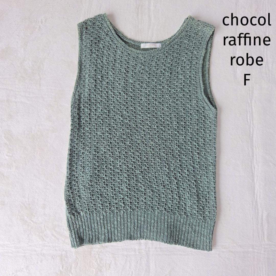 - ショコラフィネローブ 麻 リネン混 ニット F ノースリーブ グリーン系