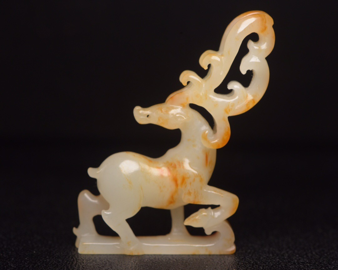 - ▽鴻▽ 和田玉製 細密彫 玉鹿 置物 賞物 古賞物 古董品 時代物 稀少珍品 中国古玩 中国古美術