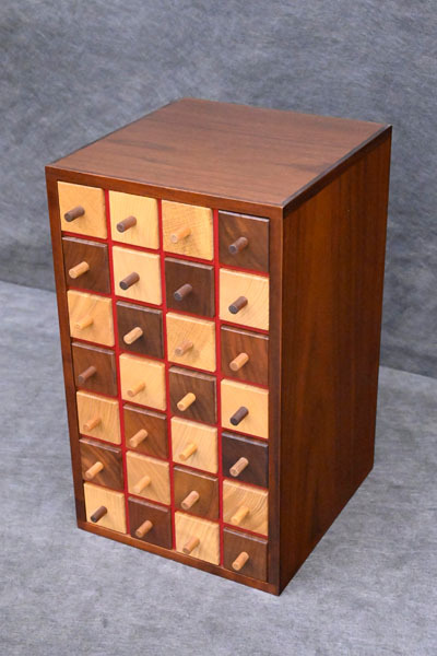 - IF231 高級家具 匠工芸 TAKUMI 名作 オーク×ウォールナット イライラボックス ミニチェスト 小引出 ジュエリーボックス 卓上 小物入れ