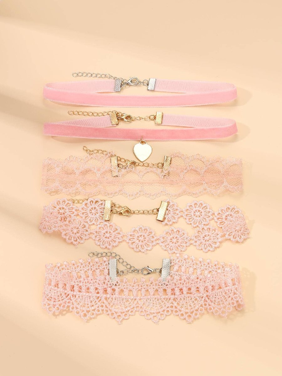 - ジュエリー レディース ネックレス セット 5 ピース/セット ハート装飾レース チョーカー