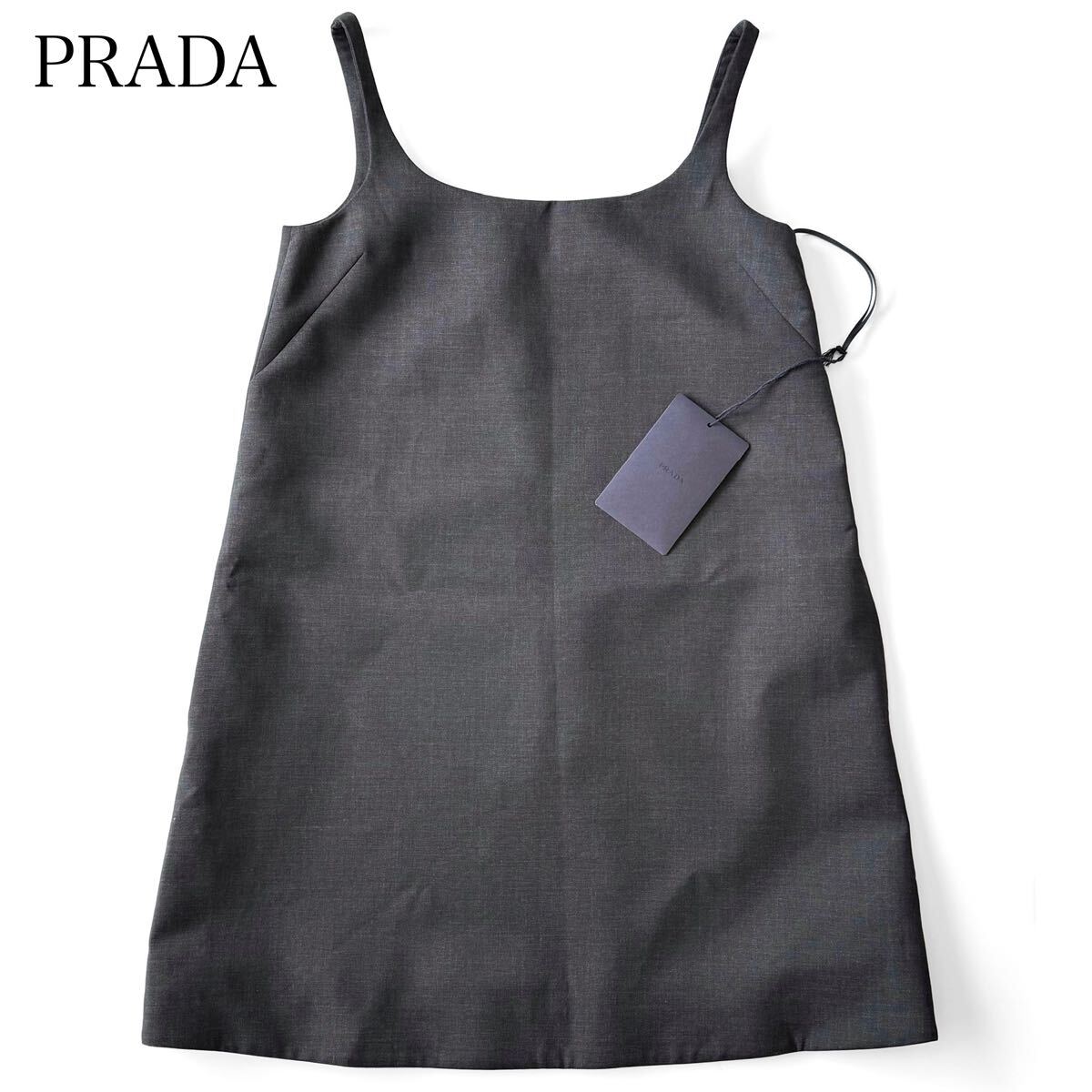 - 新品タグ付【23AW】PRADA プラダ RFID搭載 キャミワンピース ドレス チュニック ノースリーブ フレア dress ウール 三角ロゴ グレー