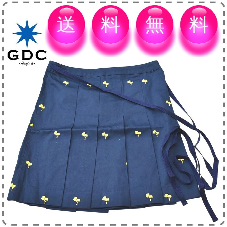 > フリーサイズ ネイビー 日本製 綿100% パームツリー プリーツスカート ヤシの木 GDC ジーディーシー 全国送料無料 A905