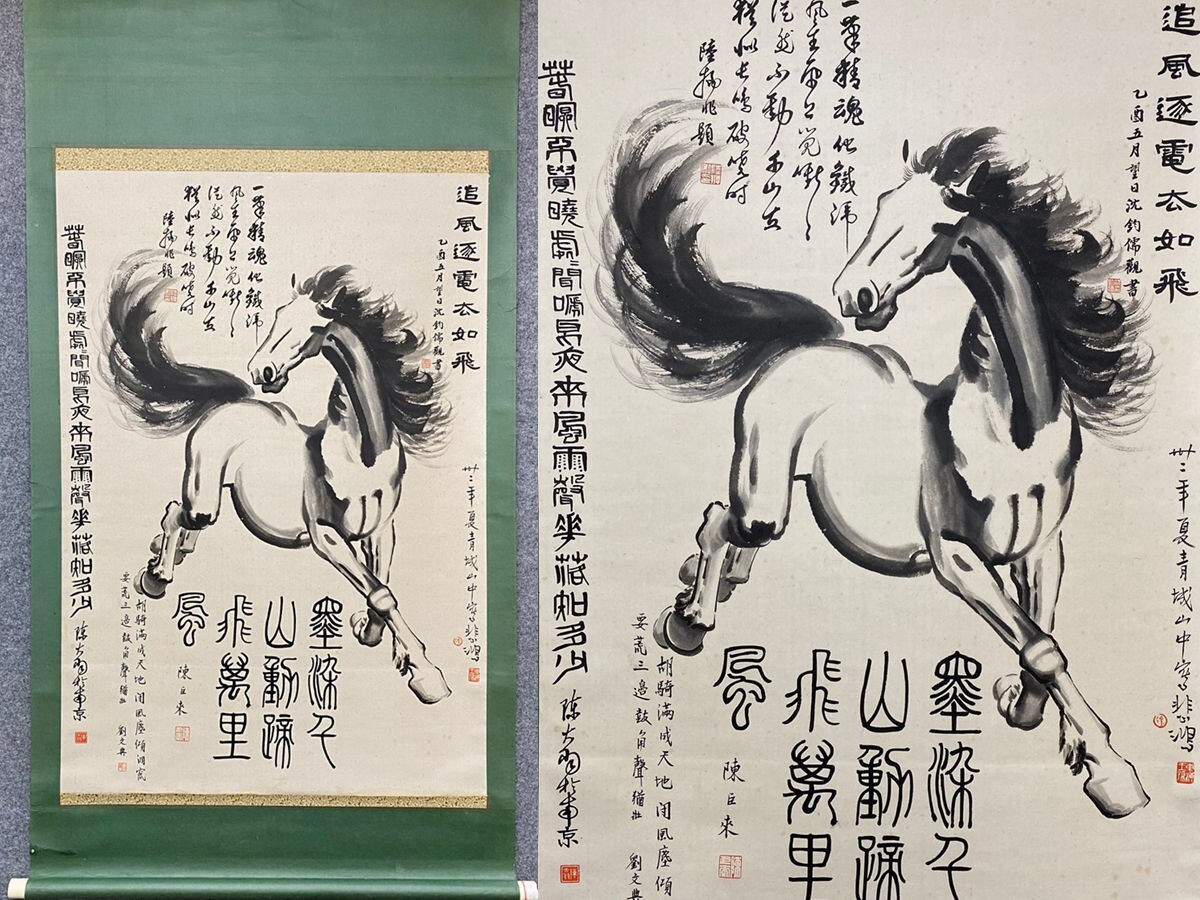 - 中国書画「徐悲鴻 奔馬図」肉筆紙本 掛け軸 墨寶妙品 書画立軸 巻き物 古美術 旧蔵出
