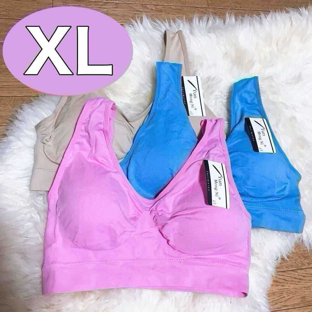 > ノンワイヤー ブラジャー 3枚セット XL ブルー 青 ベージュ 肌色 ピンク ナイトブラ スポーツブラ 授乳ブラ E75 F75 G75 C80 D80 LL