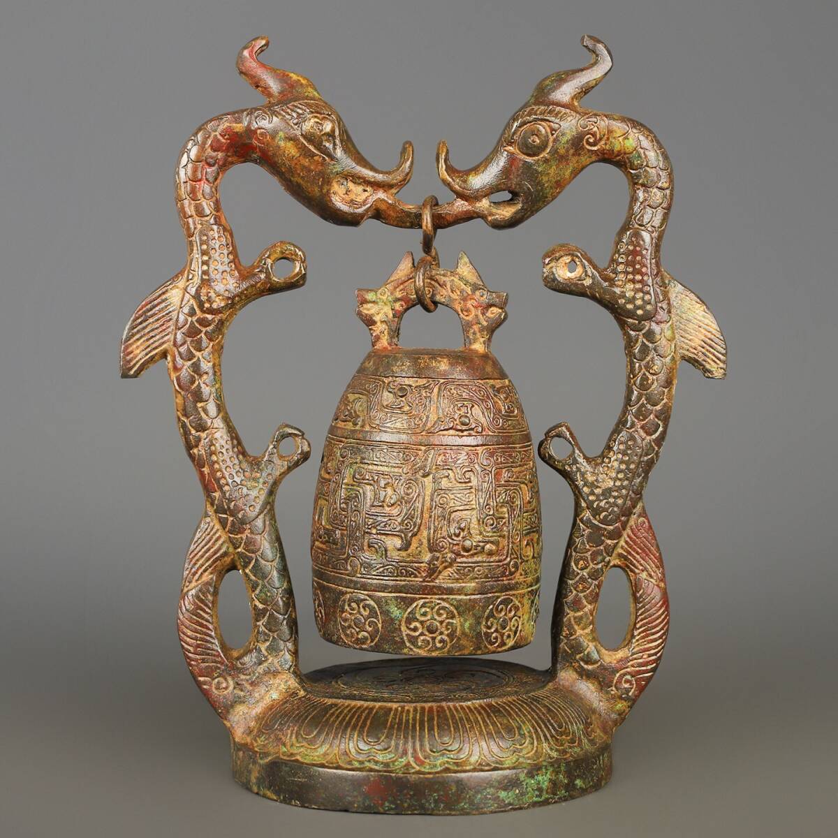 - 蔵友旧蔵出 漢 青銅作 雙龍鐘 希少珍品 貴重品 置物 古賞物 中国古玩 中国古美術品 館蔵品