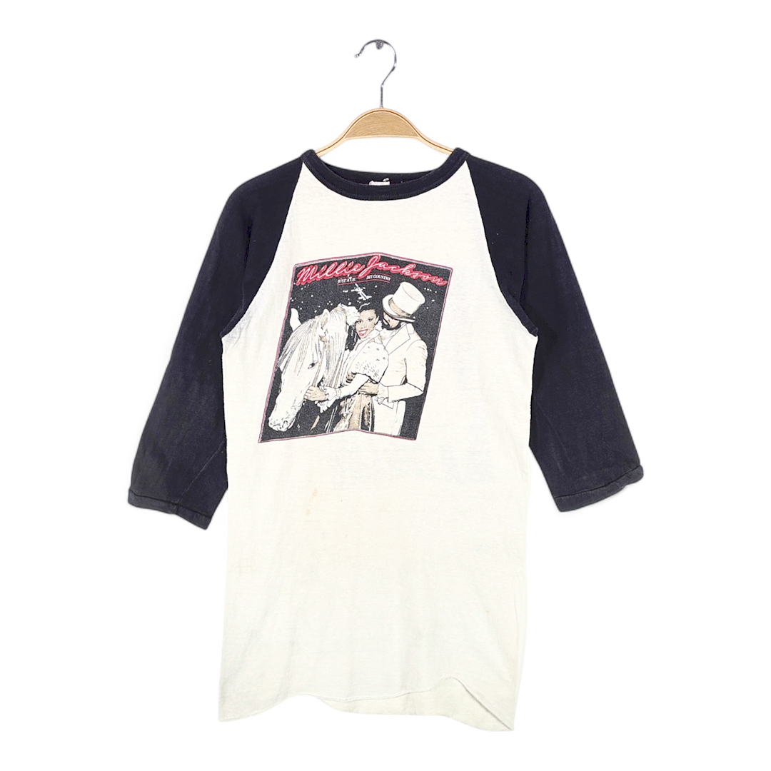 - 【送料無料】80s ミリージャクソン パキスタン製 ヴィンテージTシャツ JUST A LIL' BIT COUNTRY MILLIE JACKSON サイズM相当 古着 @AAF1007
