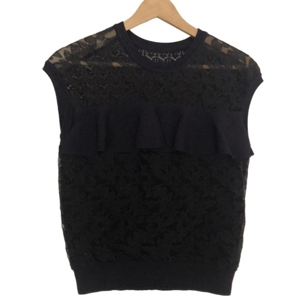 - グレースコンチネンタル GRACE CONTINENTAL ノースリーブセーター/ニット サイズ36 S 0122243198 フラワーチュールニットトップ ネイビー