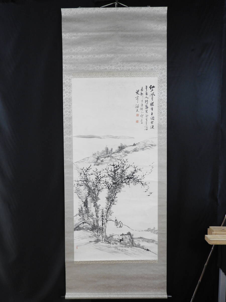 - 真作 児玉果亭 (江山風月図) 琴仙箱書き有 紙本 掛軸 真筆保証 肉筆保証 骨董 絵画 書 古物