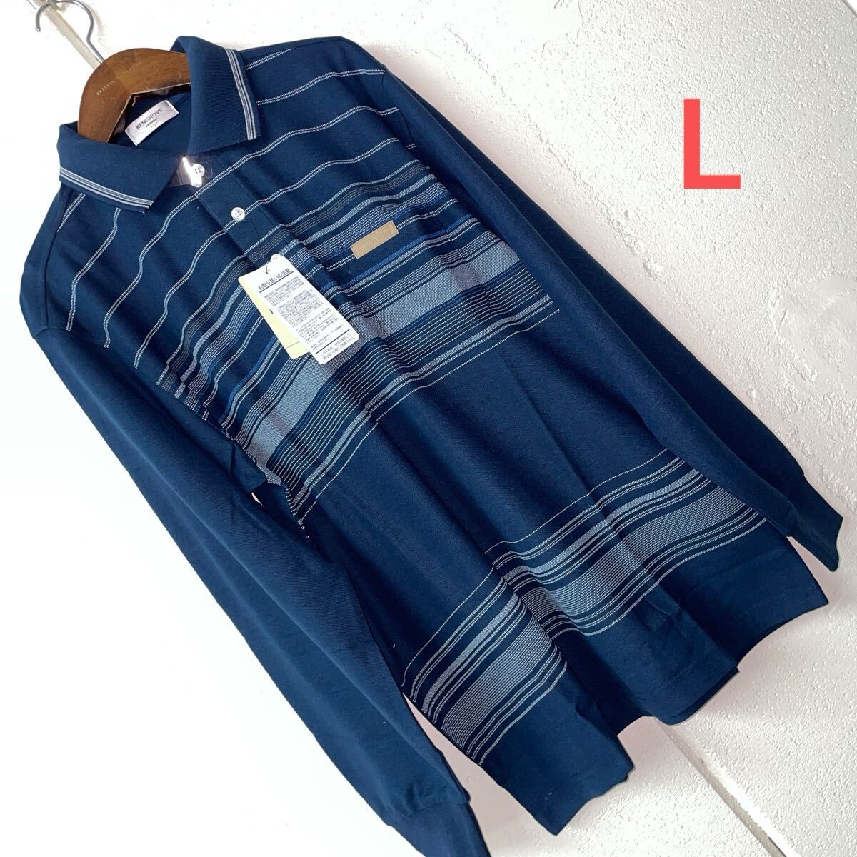 - Lサイズメンズ胸ポケット長袖ポロシャツ ネイビー