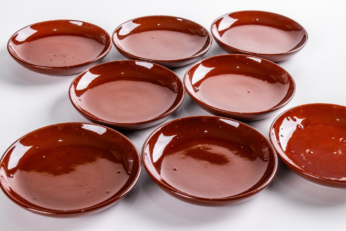 - 【うつわ】 淡路民平焼 飴釉小皿 豆皿 8客 E2273B 珉平焼 淡路焼 古美術 骨董 古玩 唐物 和食器 日本料理 懐石 料亭