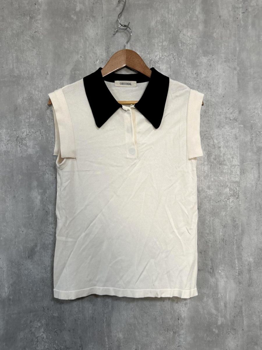 > ネコポスOK COCODEAL ココディール ノースリーブ バイカラー サマー ニット セーター size2/白 ■◆ レディース