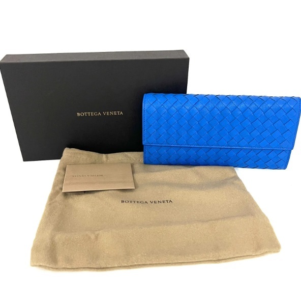 - SD1552 新品未使用! BOTTEGAVENETA ボッテガヴェネタ イントレチャート レザー ロングウォレット 二つ折り長財布 ブルー