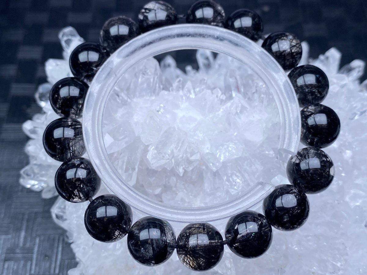 - 即決 0612J865 天然水晶【45Aブラックルチル】黒針ブレス 11.5-12mm(新品)
