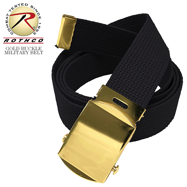 - [送料260円]ROTHCO 新品 ゴールドバックル ガチャ ベルト (黒 44) コットン キャンバス GI BELT サバゲー 大きいサイズ ミリタリー 無地