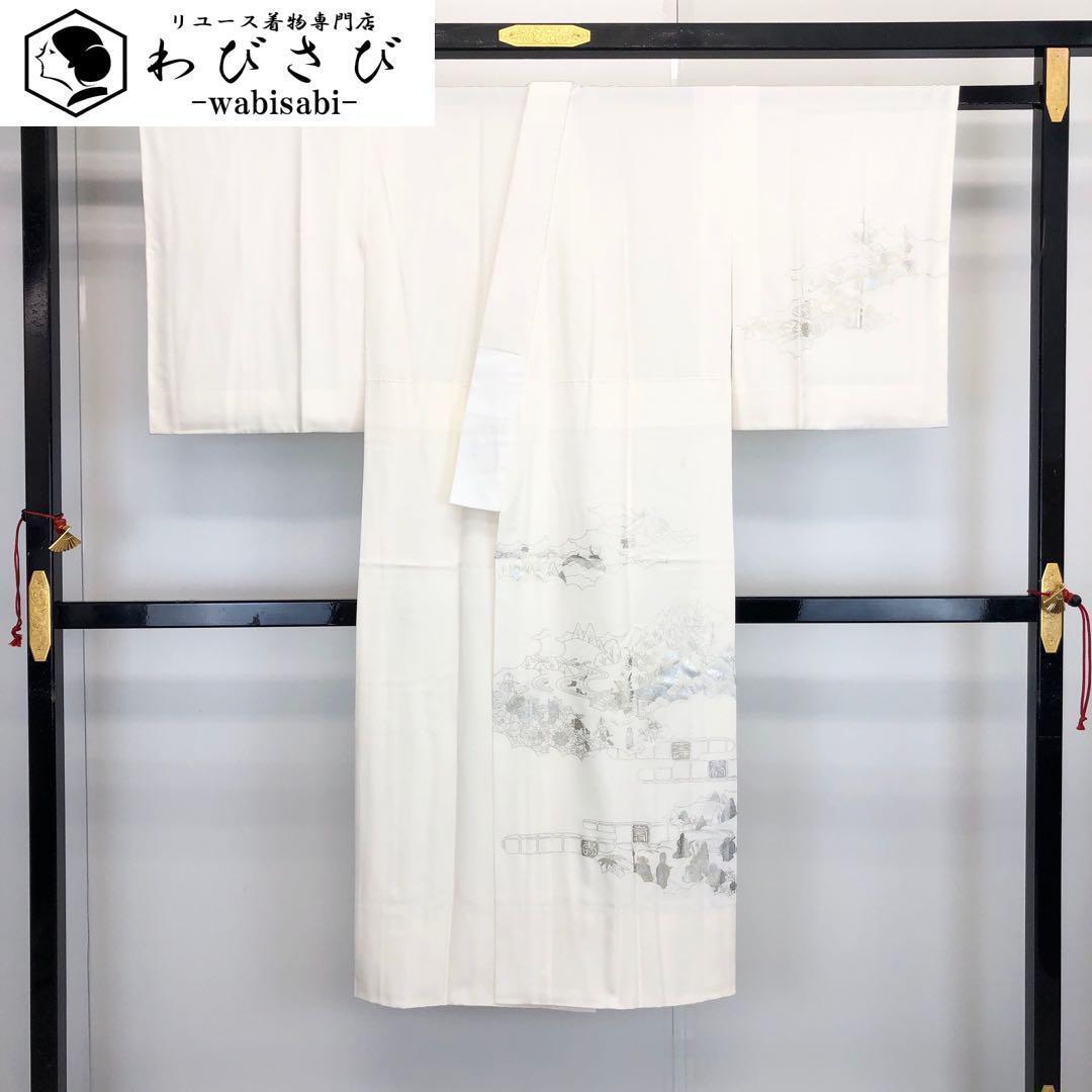 > 長襦袢 七福神 風景 花柄模様 金銀彩 乳白色 半衿付 J-209 着物 きもの kimono 和服 和装 中古 リサイクル着物 【送料無料】