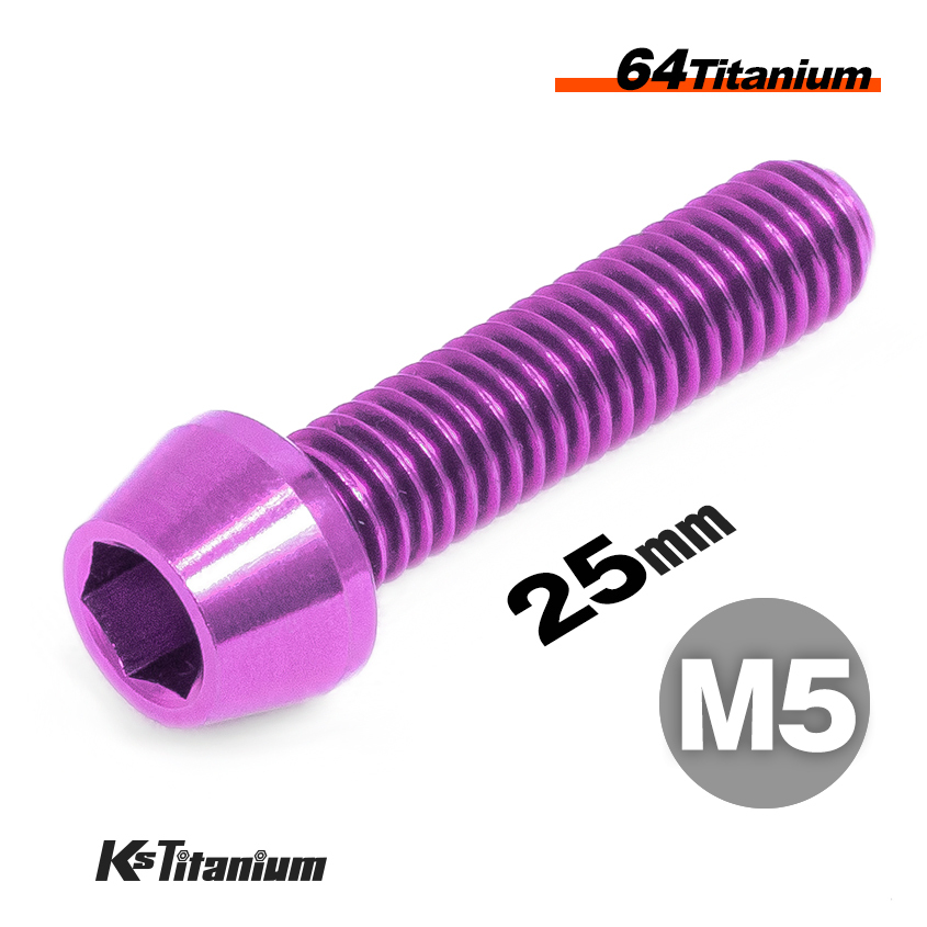 > チタンボルト M5×25 P0.8 パープル 1本売り 64チタン テーパーボルト スレッド FULL(全ネジ) バイク レストア パーツ
