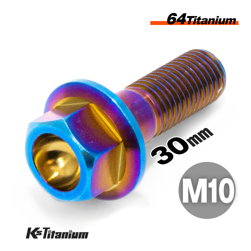 > チタンボルト M10×30 P1.25 焼き色 64チタン フランジボルト RZ250R等 フロントキャリパー リアキャリパー Ti-6Al-4V Gr5 チタン合金