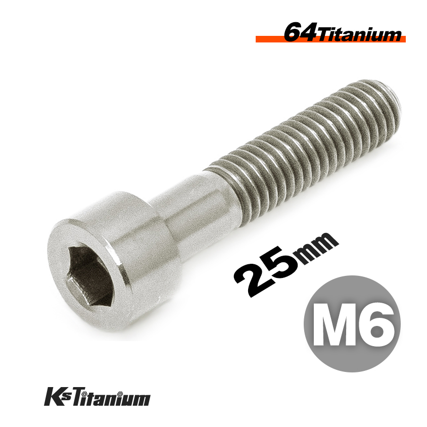 > チタンボルト M6×25 P1.0 チタン無垢色 1本売り 64チタン キャップボルト スレッド 20mm バイク レストア パーツ
