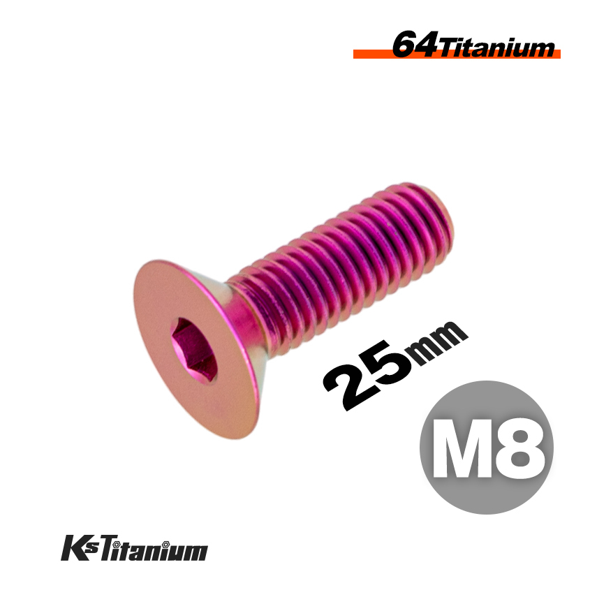 - チタンボルト M8×25 P1.25 パープル 1本売り 64チタン 六角穴付き皿ボルト 全ネジ バイク レストア パーツ