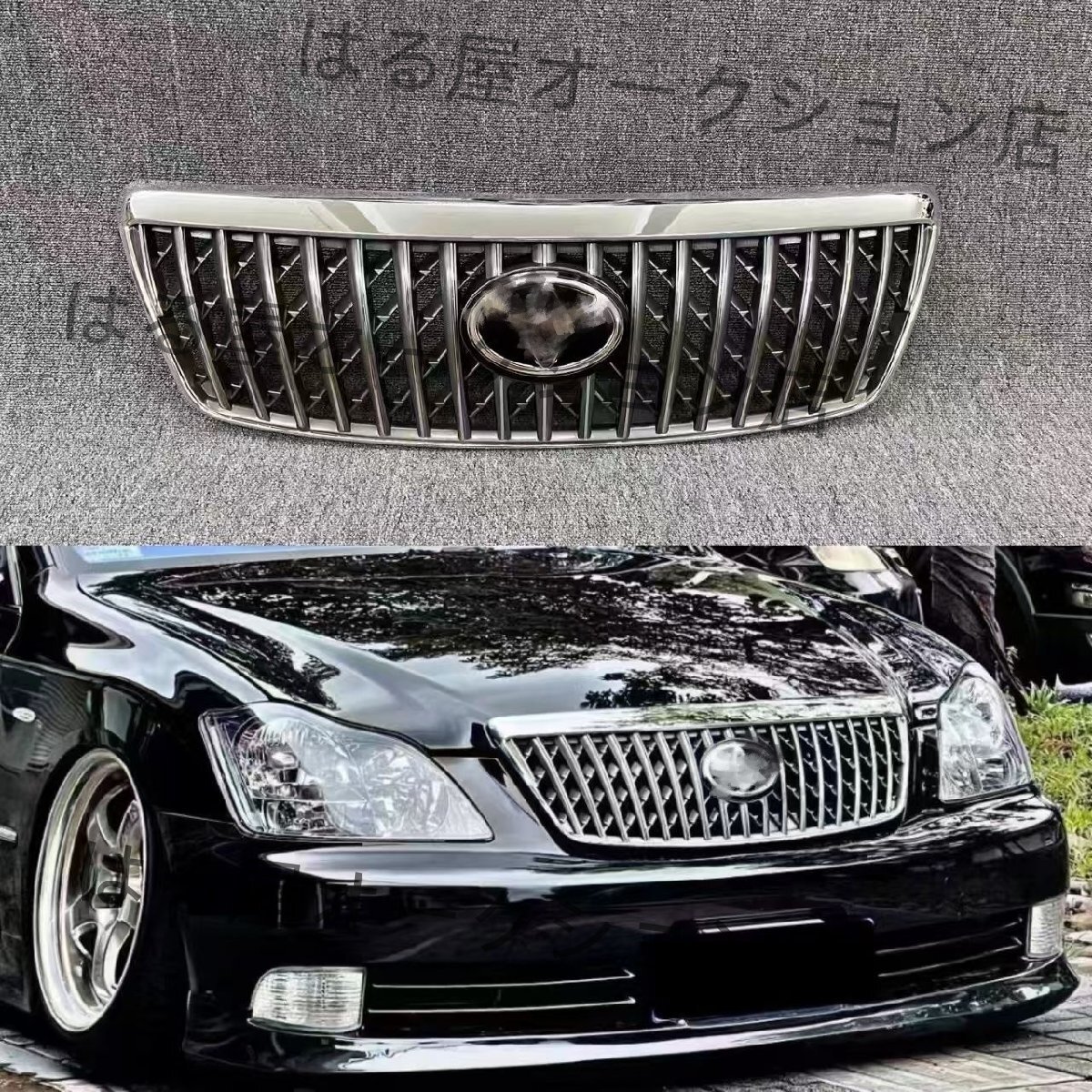 - 【12代クラウン 2005-2009】日規マジェスタGRS184風フロントグリル 水晶エンブレム仕様 中期・前期対応 カスタムパーツ GRS180/182用