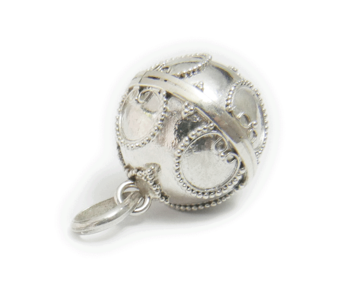 > ☆☆SALE☆☆波の模様のガムランボール☆☆揺らすとシャラン♪♪癒しの音色が響く☆☆幸運のヒーリングペンダント☆☆直径14mm/シルバー925