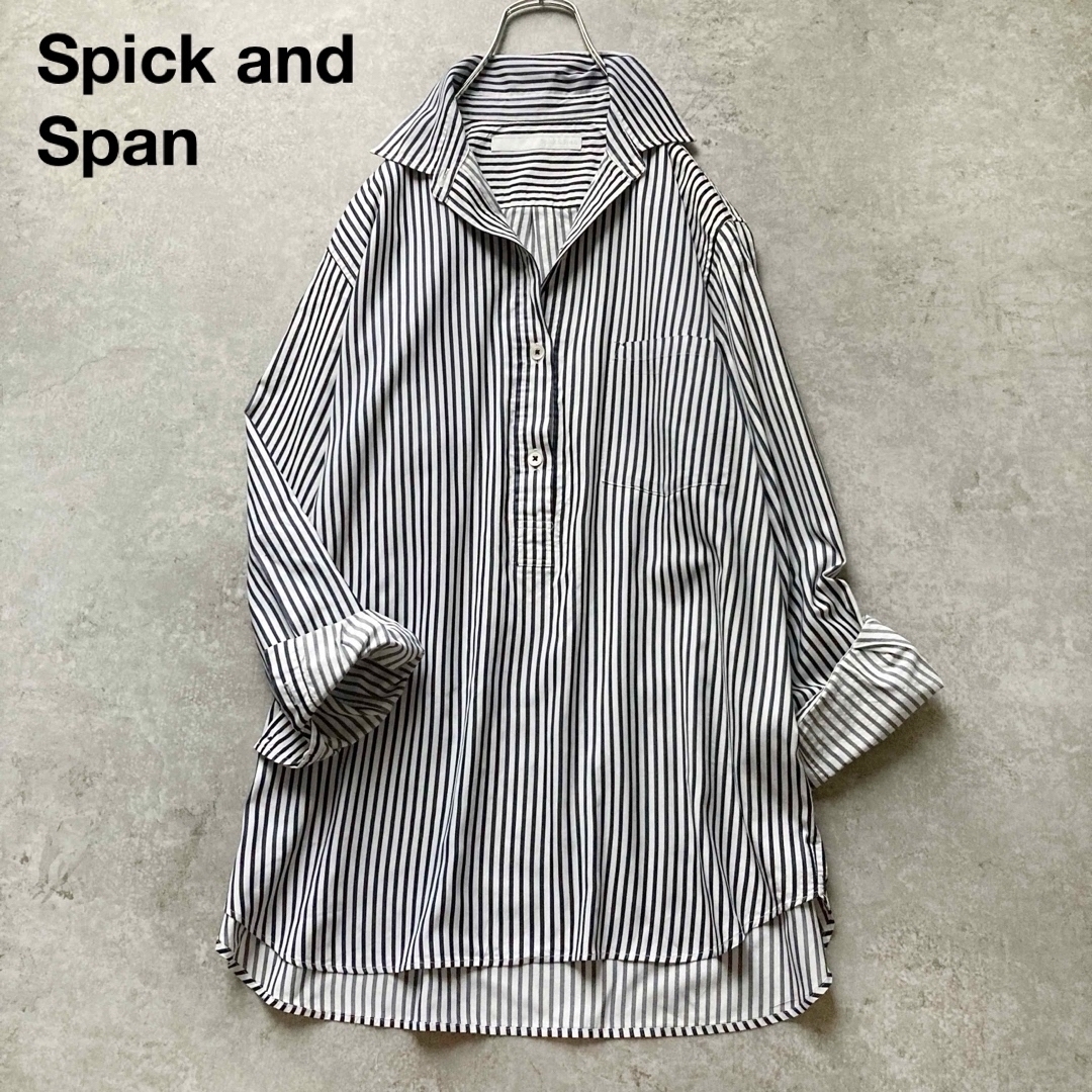 - Spick&Span スピックアンドスパン 美シルエット ストライプシャツ 長袖 爽やか ホワイト ネイビー フリーサイズ 日本製