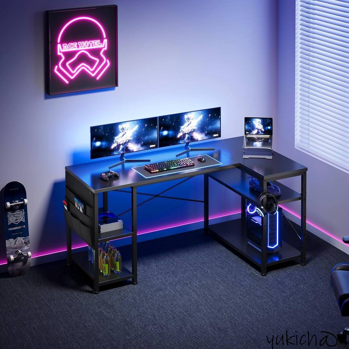 - ゲーミングデスク l字デスク机 pcデスクブラック 130cm パソコンデスク 左右入替可棚 板高さ調節可能 オフィスデスク ワークデスク