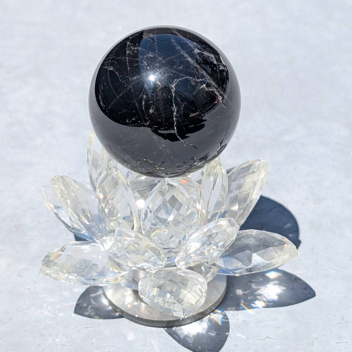 - 黒水晶 モリオン スフィア 山東省産 44ミリ 120g 黒光りするエネルギーが魅力的 邪気払い 浄化作用 パワーストーン お守り ギフト