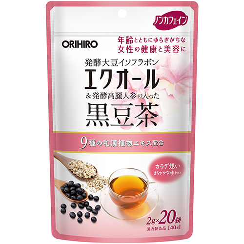 〇注意事項・送料750円が販売価格に含まれています・お取り寄せ商品です。弊社にて手配後、メーカー・卸業者からの直送になります。・まれにメーカー欠品、出荷遅延等が発生致します。問題発生時は別途メールにてご連絡致します。・配送方法の指定、日時指定、置き配、ギフト対応、他商品との同梱配送などは対応できません。・まとめ買いや複数購入の場合は通常より発送に時間が掛かる場合がございます・複数個口の場合、2階以上への搬入ができない場合があります。(その場合は1階での受け渡しとなります)・大型連休、お盆、年末年始などは発送をお休みさせていただく場合がございます・メーカー都合により、パッケージは予告なく変更される場合がございます・梱包用のダンボールはリサイクル品を使用させていただきます。・注文に関するご連絡(注文確定通知・発送通知など)はメールでご案内させていただきます※商品ページの内容について、少しでもご不明な点などがございましたら購入前に一度ご連絡ください〇商品説明年齢とともにゆらぎがちな女性の健康と美容に1)エクオール、発酵高麗人参、金時しょうがで女性の健康と美容をサポートホルモン対策・活力アップ素材のエクオールと発酵高麗人参に加え、冷え対策におすすめな金時しょうがを配合。2)和漢エキス配合冷えやめぐりにおすすめな9種類の和漢素材を配合。(ショウガ、クチナシ果実、カンゾウ、アサ種子、ダイダイ果実、ベニバナ、ミツカトウ、ハッカ、ナツメ果実)3)ノンカフェイン黒豆茶をベースにしたノンカフェインのお茶で、時間を選ばずお休み前でもご利用いただけます。4)残留農薬323種類検査済み5)20袋入り本品はエクオールや、発酵高麗人参、和漢エキスが入った女性の健康と美容におすすめの製品です。茶葉は黒豆茶をベースにはとむぎを配合し、豊かな香ばしい香りの飲みやすいブレンドティーに仕上げていますので、毎日の健康と美容のサポートにおすすめです。〇商品仕様内容量:2g×20袋入数:40×1賞味期限:2年重量55g(ケース重量2.7kg)規格【原材料】焙煎黒豆(日本)、はとむぎ茶、発酵高麗人参エキス末(韓国)、大豆胚芽抽出発酵物、植物抽出エキス末(植物抽出エキス(ミツカトウ、ベニバナ、クチナシ果実、アサ種子、ナツメ果実、ダイダイ果実、ショウガ、カンゾウ、ハッカ)、デキストリン)、金時しょうが末、大豆抽出物注意事項【お召し上がり方】<煮出してご利用の場合> よく沸騰している500mlの熱湯に本品1袋を入れ、5分間を目安に弱火で煮出してください。ほどよい色と香りが出ましたら火を止め、ポットで保温するか冷蔵庫で冷やしてお召し上がりください。煮出す時間はお茶の色や香りでお好みによって調節してください。※ふきこぼれる事がありますので、その場を離れないでください。<急須をご使用の場合> 温めた急須に本品1袋を入れ熱湯を注ぎ、3〜5分ほどじっくりと蒸らしてお好みの濃さでお召し上がりください。【保存方法・注意事項】●開封後は封をしっかり閉め、湿気に注意して保存し、早めにお召し上がりください。●煮出したお茶は1日以内にお召し上がりください。 ●一度使用したティーバッグの再利用はご遠慮ください。●抽出後、ティーバッグをそのまま入れておきますと、苦みが出てくることがありますので必ず取り出してポットなどに移してください。●本品は植物を原料として使用しておりますので、商品によっては風味や色に差が生じる場合がありますが、品質には問題ありません。●抽出液の表面に油状のものが浮くことがありますが、原料に含まれている脂質が遊離したものです。●煮出したお茶に沈殿物やにごりを生じる場合がありますが、品質には問題ありません。●本品は熱湯を使いますのでやけどに気をつけてください。●体質に合わない場合や体調がすぐれない方はご利用を中止してください。●電子レンジでの加熱は突沸(急激な沸騰)の恐れがありますのでご注意ください。△食生活は、主食、主菜、副菜を基本に、食事のバランスを。(出典:オリヒロ株式会社)