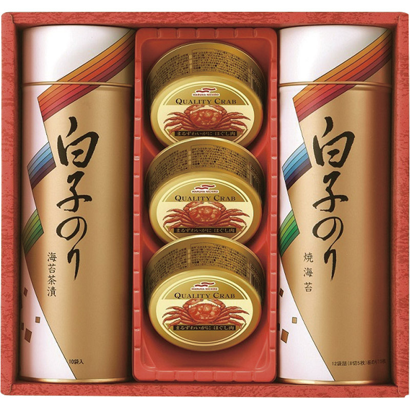 〇注意事項・送料800円が販売価格に含まれています・お取り寄せ商品です。弊社にて手配後、メーカー・卸業者からの直送になります。・まれにメーカー欠品、出荷遅延等が発生致します。問題発生時は別途メールにてご連絡致します。・配送方法の指定、日時指定、置き配、ギフト対応、他商品との同梱配送などは対応できません。・まとめ買いや複数購入の場合は通常より発送に時間が掛かる場合がございます・複数個口の場合、2階以上への搬入ができない場合があります。(その場合は1階での受け渡しとなります)・大型連休、お盆、年末年始などは発送をお休みさせていただく場合がございます・メーカー都合により、パッケージは予告なく変更される場合がございます・梱包用のダンボールはリサイクル品を使用させていただきます。・注文に関するご連絡(注文確定通知・発送通知など)はメールでご案内させていただきます※商品ページの内容について、少しでもご不明な点などがございましたら購入前に一度ご連絡ください〇商品説明あらゆるギフトシーンにおすすめです!食卓を豪華に、海の幸を贅沢に贈るのり・お茶漬け・かに缶のギフトセットです。〇商品仕様●内容:のり茶漬け10袋×1、まるずわいがにほぐし肉55g×3、焼のり8切5枚12袋×1規格●化粧箱入(255×80×235mm) 800g●加工地:日本●賞味期限:製造日より常温にて1095日●アレルギー表示:小麦・乳・かに(出典:株式会社 八大)