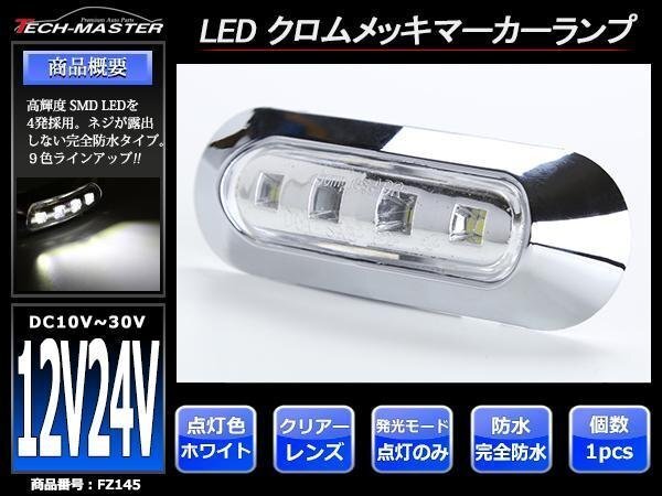 > DC12V/DC24V 汎用 小型 クロムメッキ LEDサイドマーカー マーカーランプ 車高灯 防水 自動車/トラック クリアーレンズ ホワイト発光 FZ145