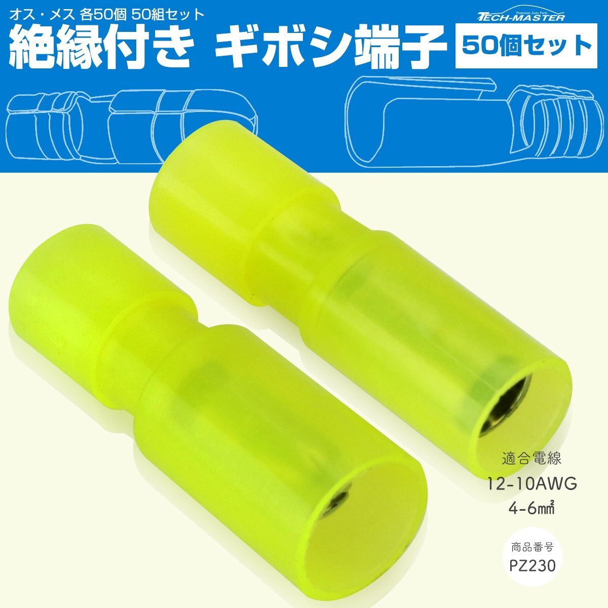 - 絶縁被膜付き ギボシ端子 オス、メス 各50個セット 12-10AWG イエロー IZ230