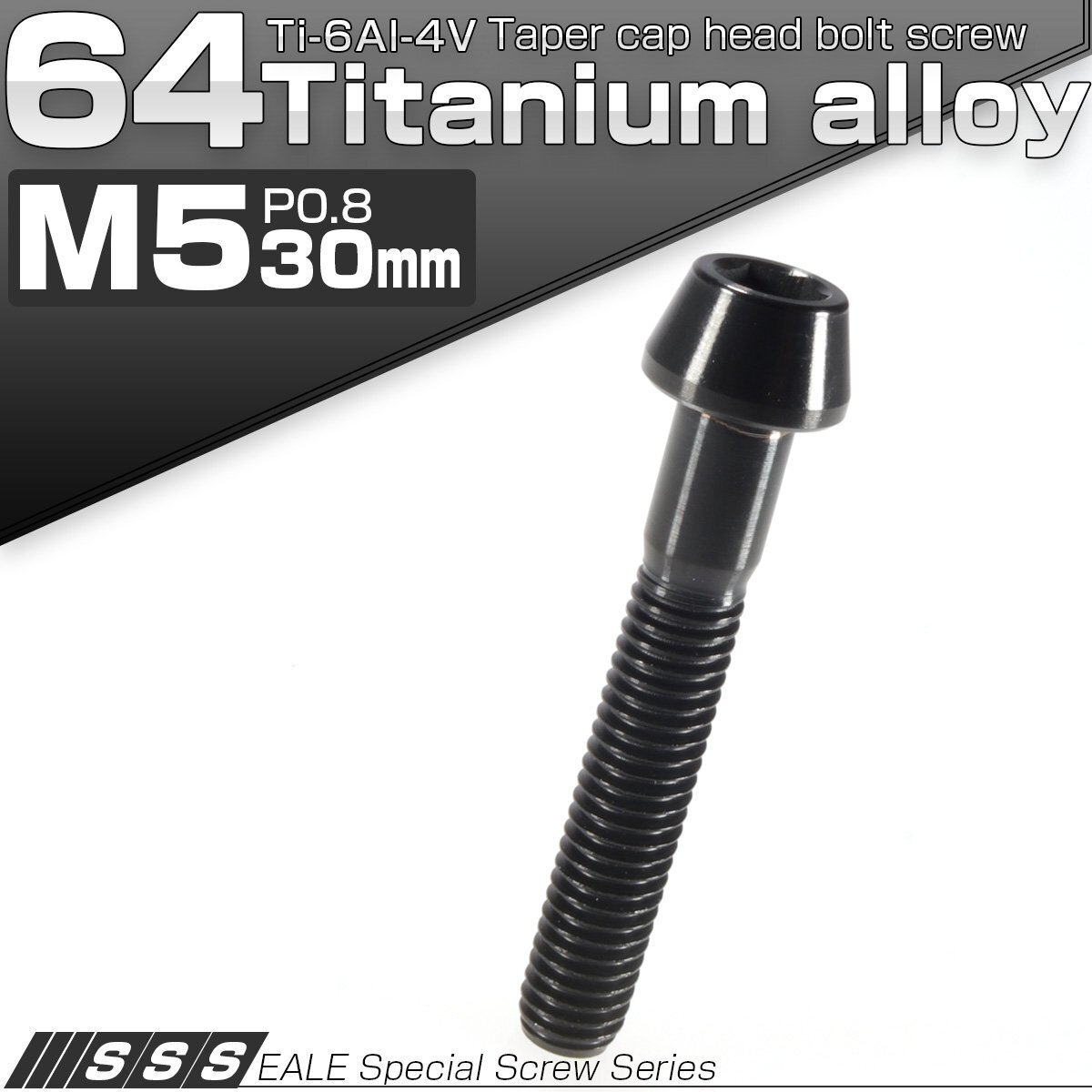 - チタンボルト M5×30mm P0.8 キャップボルト ブラック 六角穴付きボルト テーパー JA364