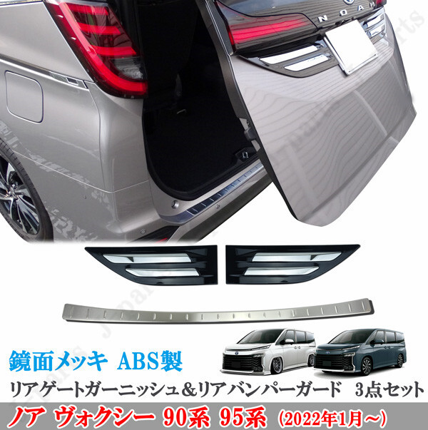 > ノア ヴォクシー 90系 ABS製 リアゲートガーニッシュ ブラックメッキライン&リアバンパーガード 合計3点セット 貼り付けドレスアップ
