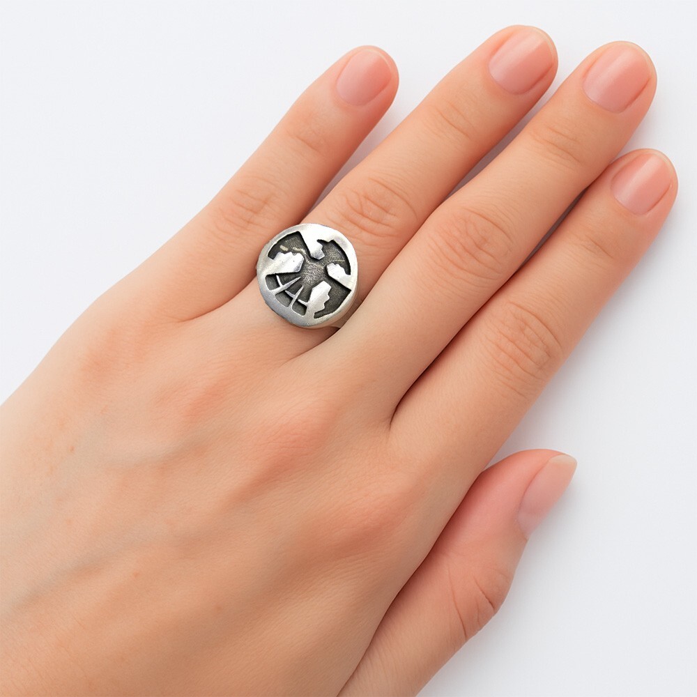 > サンダーバード 鳥 シルエット ヴィンテージ ラウンド リング 指輪 シルバープレート ユニークジュエリー サウスウェスタンスタイル Y13-B