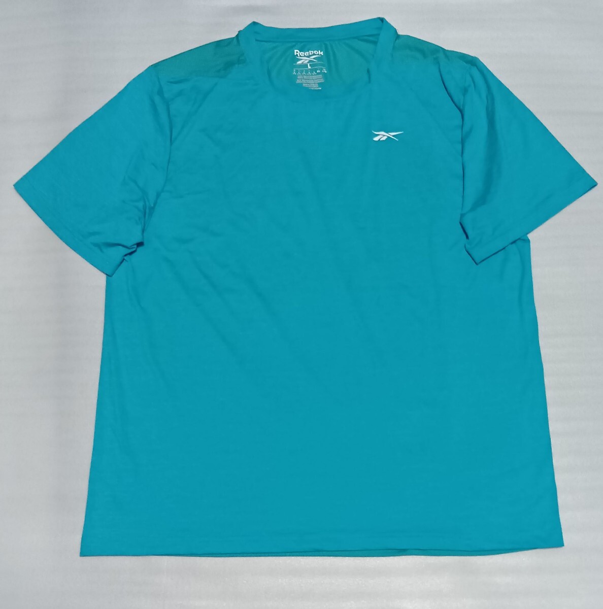 > ☆Reebok サイズL半袖Tシャツ マリン水色ブルー砂嵐風味エメラルド緑グリーン メッシュ ストレッチTEEスポーツSPEED WICKティー リーボック