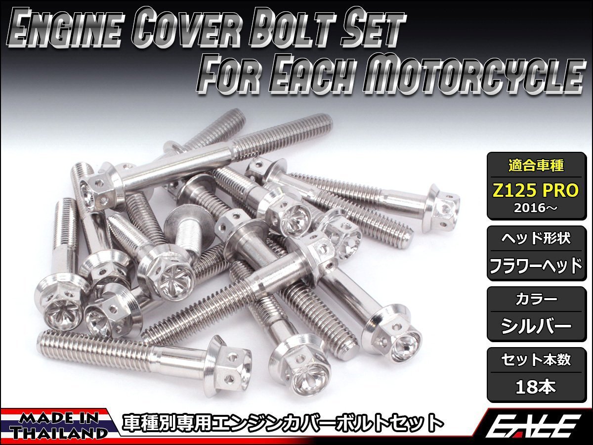 > Z125 PRO(BR125)用 エンジンカバー ボルト18本セット ステンレス製フランジ付六角ボルト使用 フラワーヘッド シルバー TB8029