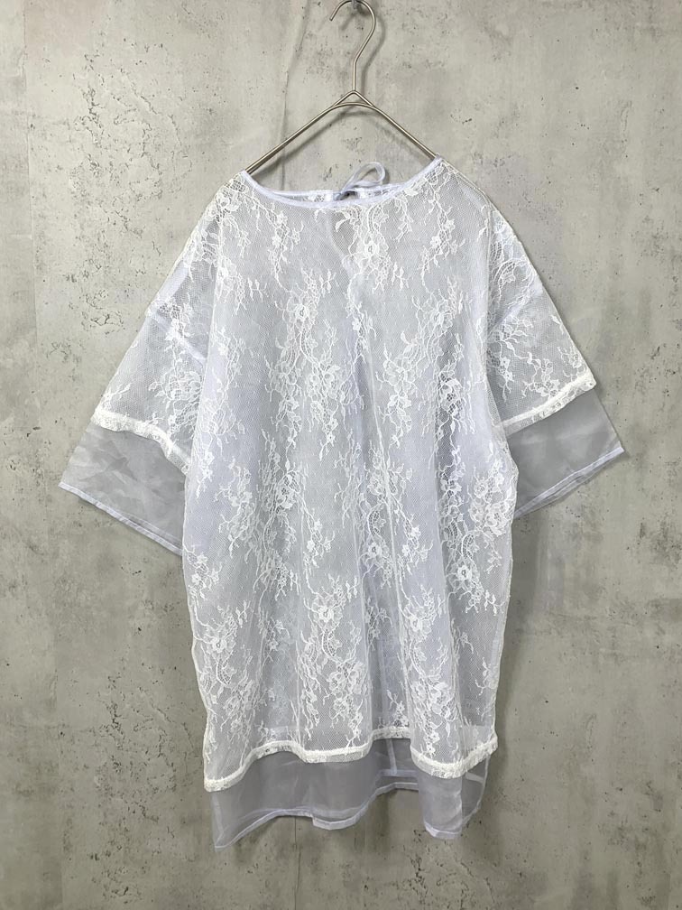 > ゆうパケットOK 美品 forksy. フォルクシー FOsc984 レース×オーガンジーレイヤードオーバーサイズトップス カットソー sizeF/白 ■◆