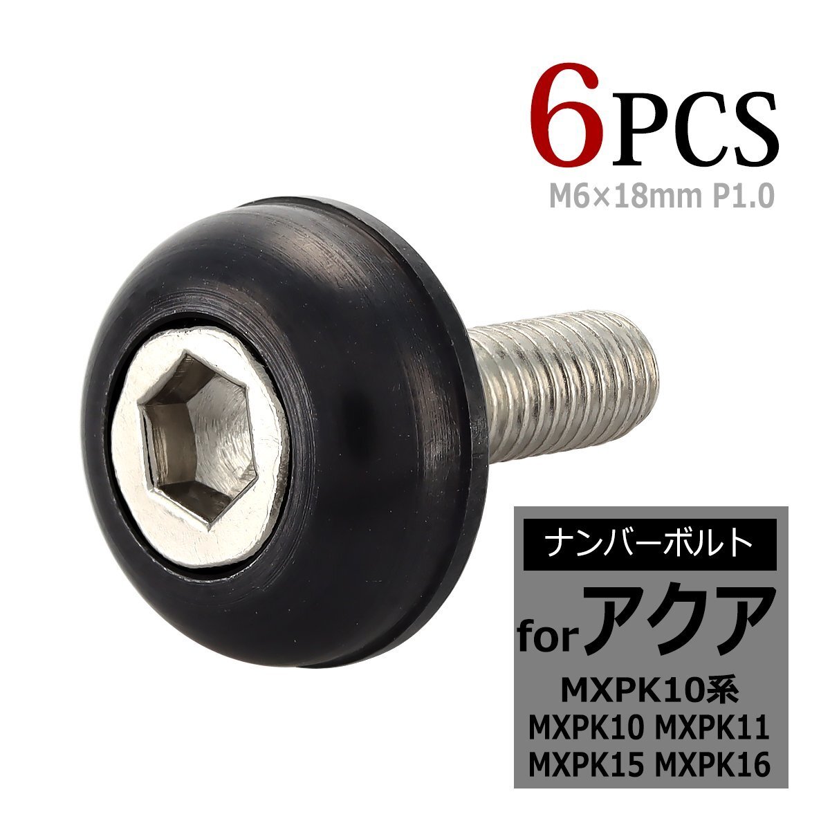 - MXPK10系 アクア ナンバーボルト MXPK10 MXPK11 MXPK15 MXPK16 M6x18mm P1.0 6本セット ナンバープレートボルト 山型 TH0702-BK