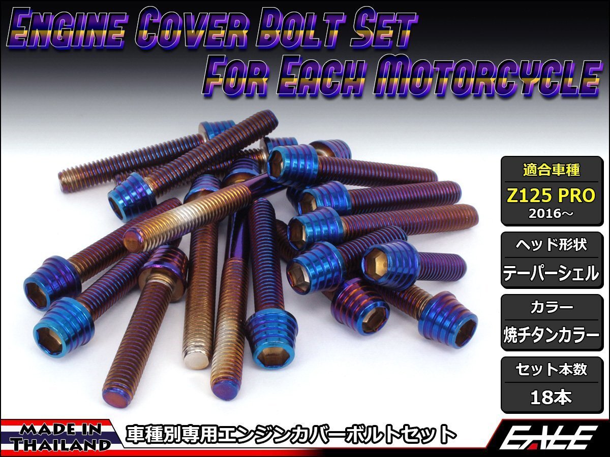 > Z125 PRO(BR125)用 エンジンカバー ボルト18本セット ステンレス製キャップボルト使用 テーパーシェルヘッド 焼チタンカラー TB8028