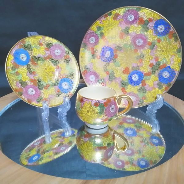 > オールドニッポン◇自宅保管 京薩摩 金花詰 トリオ カップ&ソーサー キャビネット プレート 里帰り品