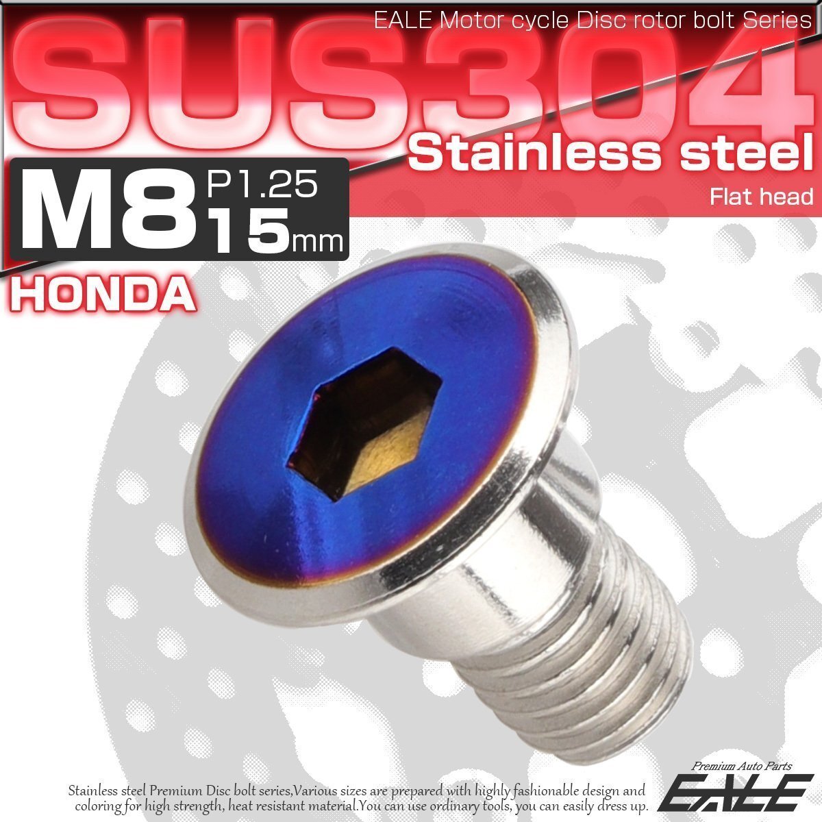 > ホンダ用 ブレーキ ディスク ローター ボルト M8×15mm P=1.25 SUS304 ステンレス フラットヘッド シルバー/ブルー TD0317