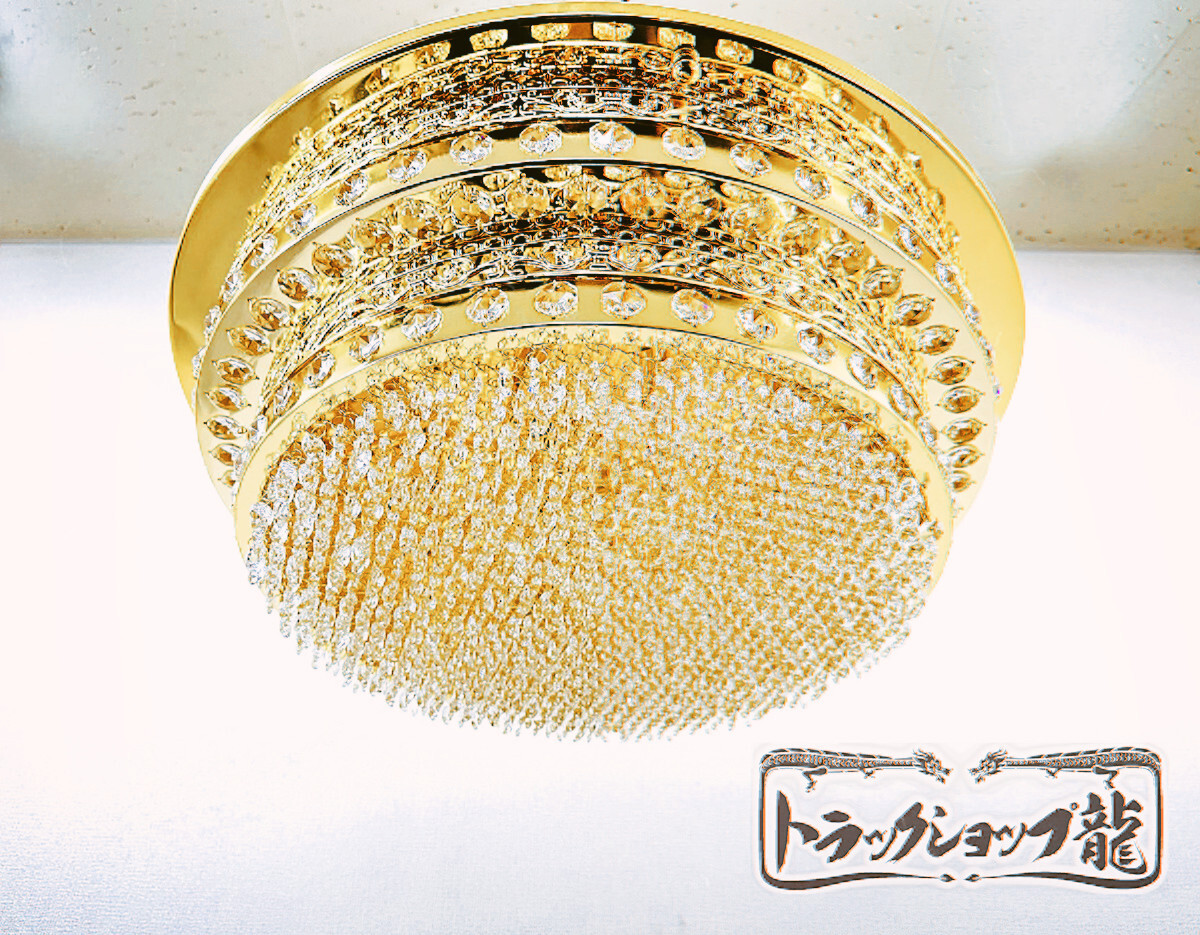 > 特価 訳アリ品 直径60cm 天吊り UFO型 トラック シャンデリア 2段 濃い金メッキ デコトラ 男の城 レトロ 観光バス パーツ 車内照明 C1697S