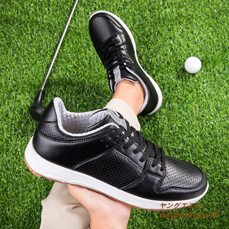 > 絶賛★ゴルフシューズ 新品スニーカー カップル男女兼用 ウォーキングシューズ 運動靴 超軽量スポーツシューズ 通気性 防滑 耐磨 黒 24.5cm