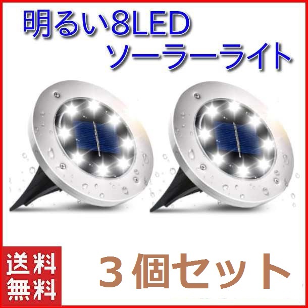 - 【3個セット・ホワイト】ガーデンライト ソーラーライト 8LED 屋外 埋め込み式 高輝度 IP65防水 太陽光パネル 防犯 光センサー 自動点灯